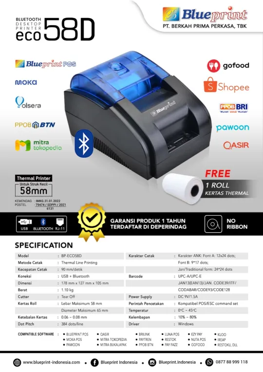 Paket Printer Thermal Kasir ECO58 Gratis Langganan Aplikasi Kasir Blueprint POS 6 Bulan – Paket O
