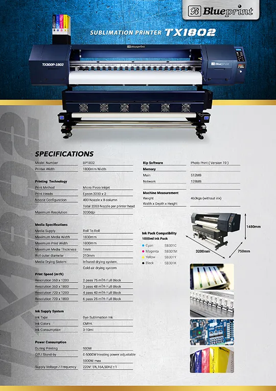 Printer Sublimasi 2 Head Blueprint TX1802 , GARANSI SEUMUR HIDUP *s&k Berlaku