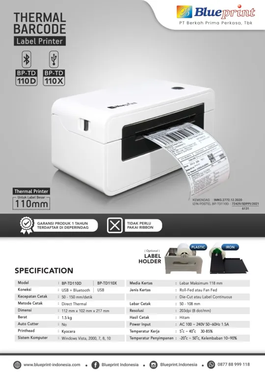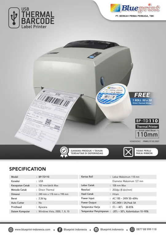 Printer Label Barcode Resi BLUEPRINT BP-TD110 – USB