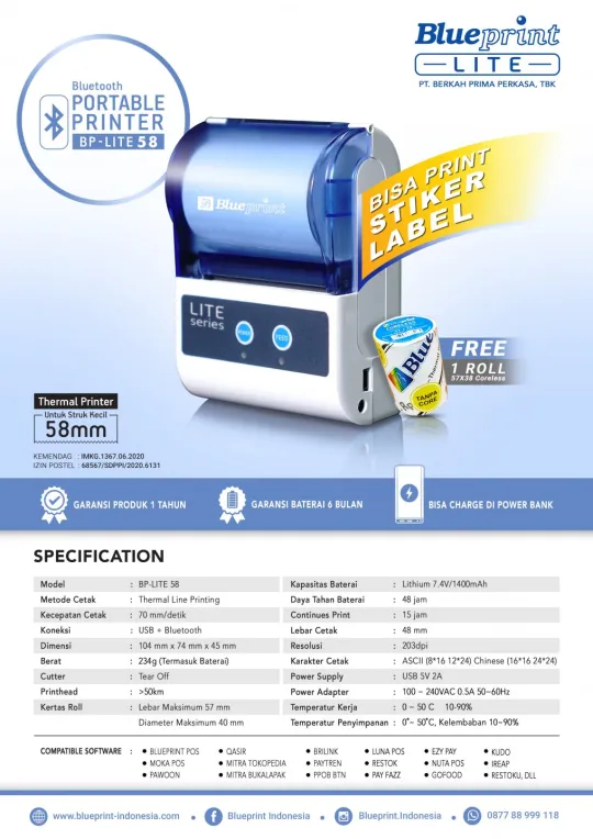 Paket Printer Thermal Kasir ECO58 Gratis Langganan Aplikasi Kasir Blueprint POS 6 Bulan – Paket O
