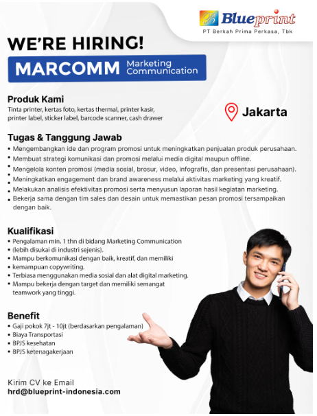 2. Pengalaman min. 1 thn di bidang Marketing Communication (lebih disukai di industri sejenis).