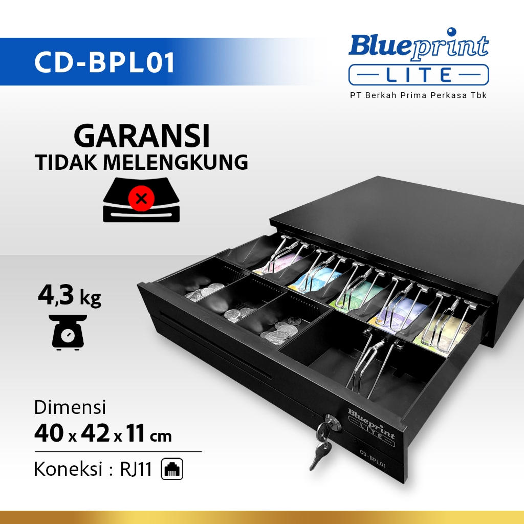 CASH DRAWER / LACI KASIR / LACI UANG RJ-11 MERK BLUEPRINT CD-BPL01 adalah tempat uang/laci uang yang dapat diprogram untuk membuka secara otomatis saat pembeli melakukan pembayaran.