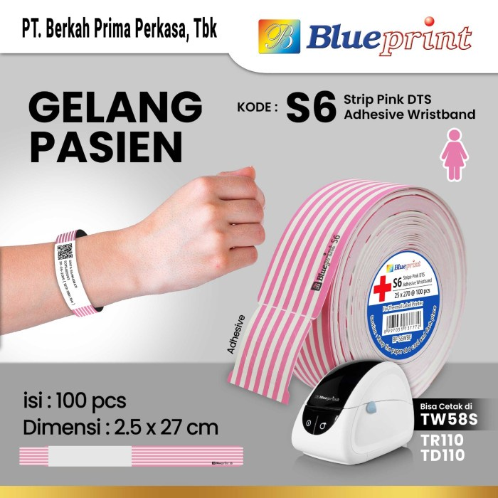 Direct Thermal Stiker ID Band BLUEPRINT 25×270 mm Gelang Pasien Dewasa – PinkStrip