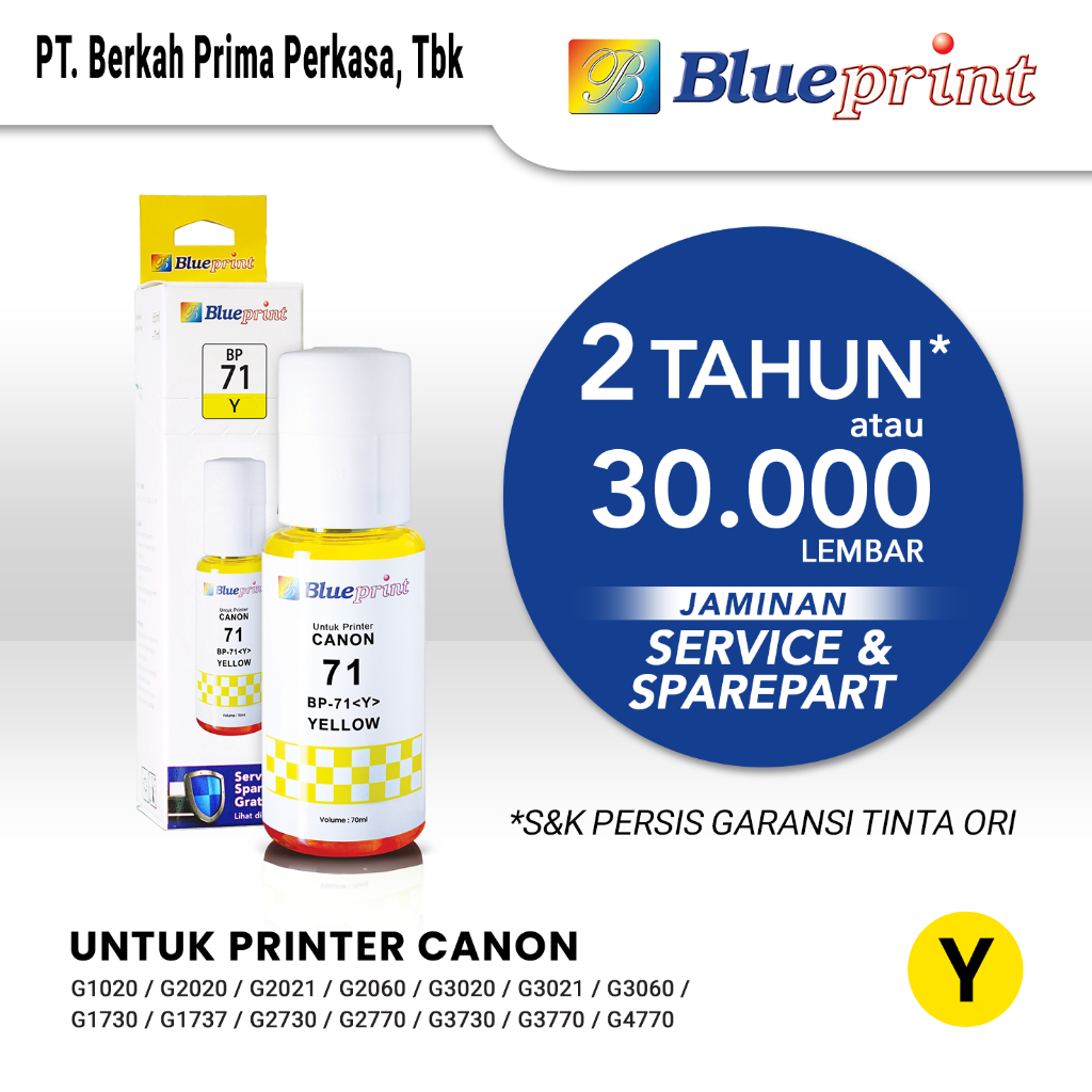 Tinta Blueprint Canon 71 Yellow Untuk Printer Canon G1010 G2010 G3010 G3020 G1730 G2730 G2770 G3730